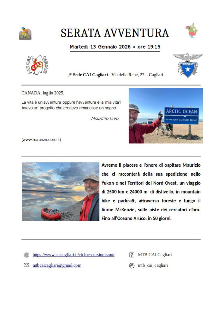 Martedì 13 gennaio 2026 ore 19.15 – Serata avventura con Maurizio Doro